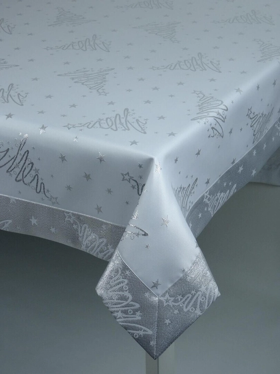 Świąteczny obrus "Gładki" srebrny - ząbek