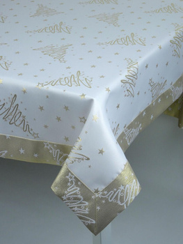 Świąteczny obrus "Choinka 3401" złota - ząbek