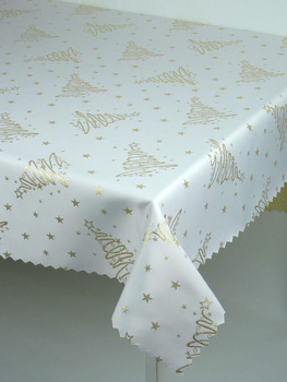 Świąteczny obrus "Choinka 3401" złota - ząbek