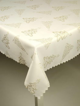 Świąteczny obrus "Choinka 3401" złoty - ząbek