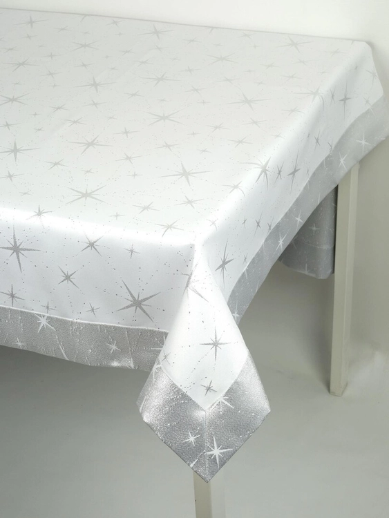 Świąteczny obrus "Gładki" srebrny - ząbek
