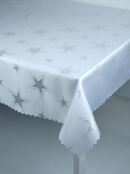 Świąteczny obrus "Klasyczna gwiazdka" srebrny - ząbek