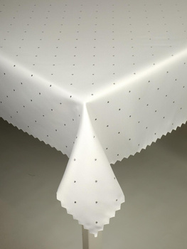 Świąteczny obrus "Srebrne kropki" - ząbek