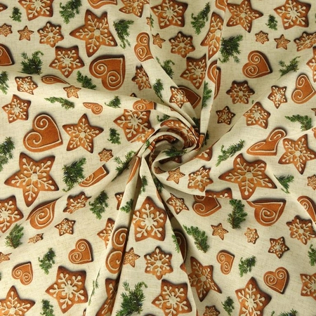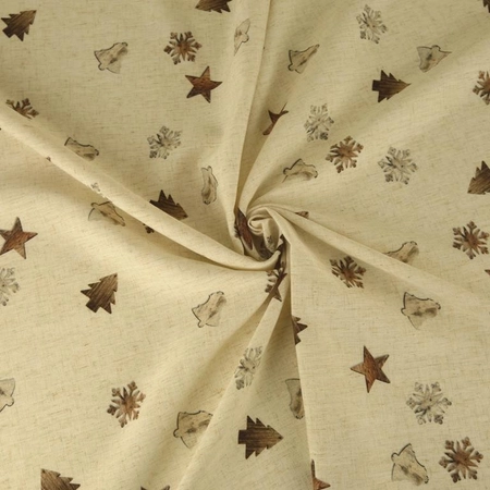 Tkanina obrusowa świąteczna z lnem - Drewniane ozdoby