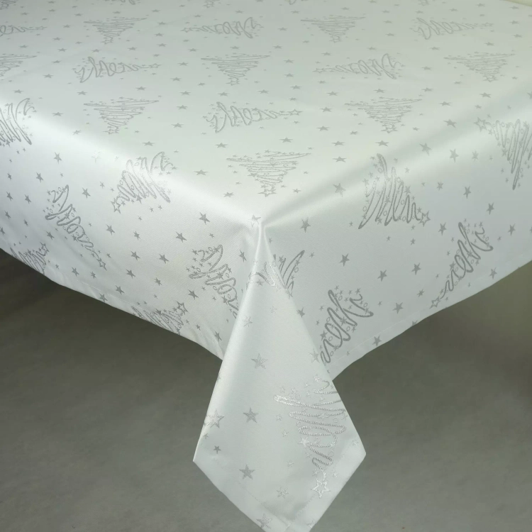 Obrus świąteczny Choinka 2176 srebrna - podszyty