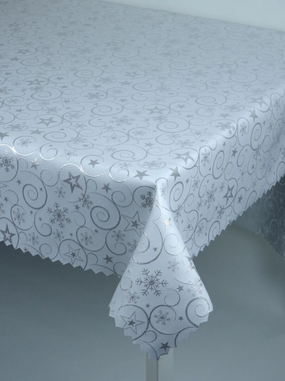 Obrus świąteczny "Klasyczna gwiazdka srebrny" - ząbek