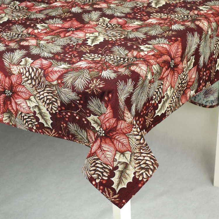Obrus gobelinowy świąteczny 180x140 - Poinsecja i szyszki
