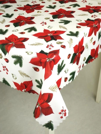 - Obrus na świąteczny stół na Boże Narodzenie wykończony dekoracyjnym ząbkiem. Obrus plamoodporny, odporny na krótkotrwały kontakt z cieczą np. herbatą, sokiem. Do wyboru obrusy prostokątne, kwadraty, owalne i okrągłe. Producent hurtownia tekstylna Marion.