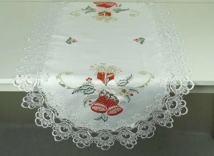 Bieżnik haftowany świąteczny z gipiurą 60x120 cm