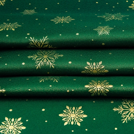 Tkanina obrusowa świąteczna "Płatek śniegu" zielono-złoty