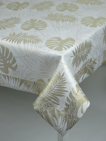 Tkanina obrusowa plamoodporna wyprodukowana w Polsce. Zastosowane w produkcji najwyższej jakości przędze zapewniają jej trwałość.